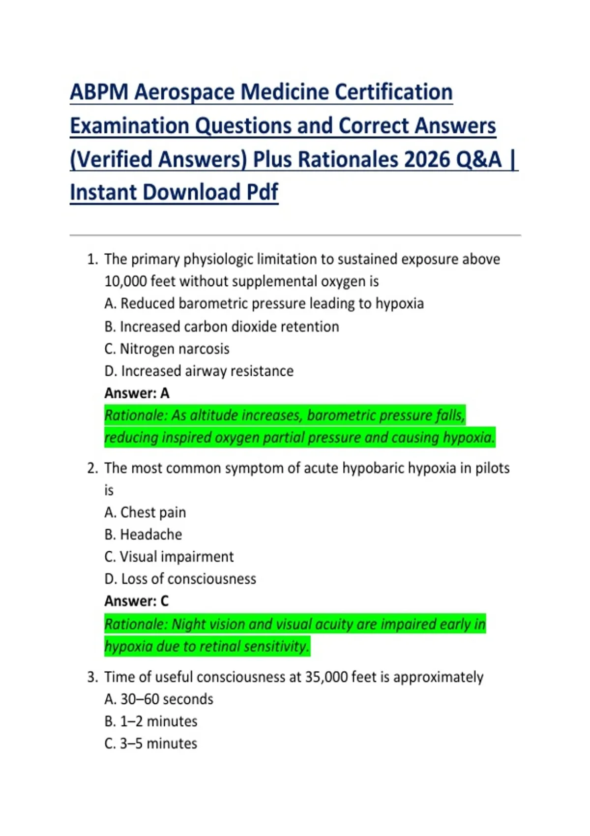 Bundle for ABPM Aerospace Medicine Certification Examination Questions and Correct Answers (Verified Answers) Plus Rationales 2026 Q&A | Instant Download Pdf