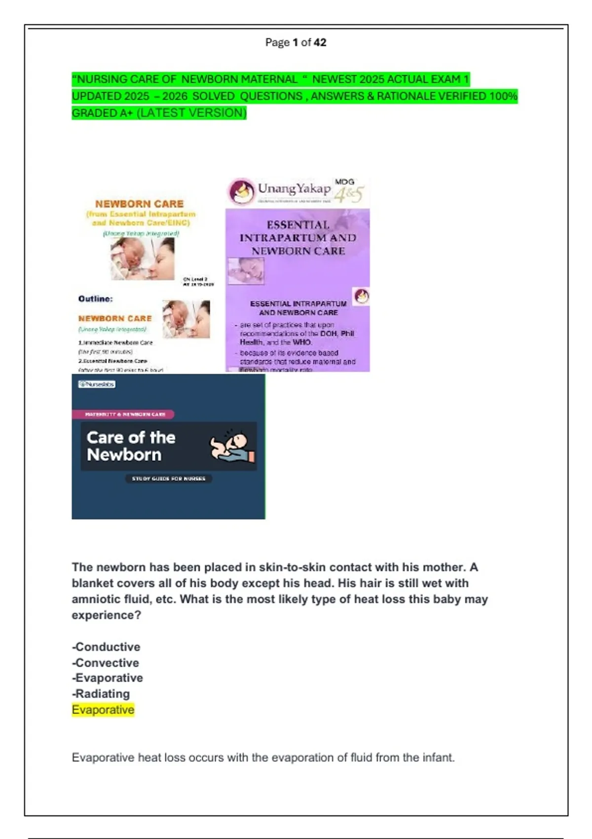 MATERNAL CHILD NURSING CARE ”LATEST EXAM SOLVED QUESTIONS & ANSWERS VERIFIED 100% GRADED A+
