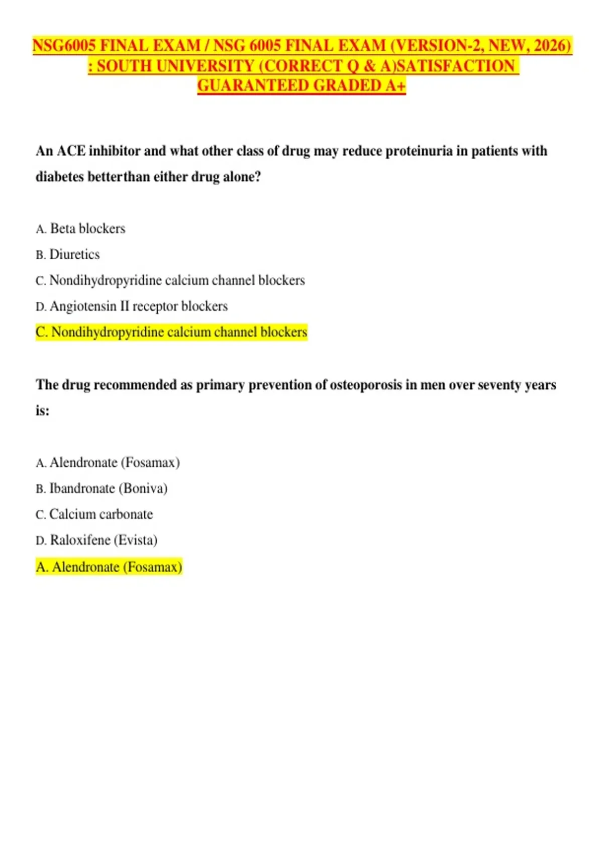 NSG 6005/NSG6005 ADVANCED PHARMACOLOGY FINAL EXAM TEST BANK. ALL CHAPTERS COVERED. QUESTIONS AND ANSWERS 2026 UPDATE.