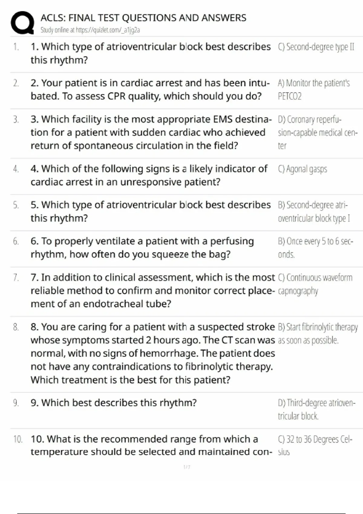 ACLS final test questions and answers