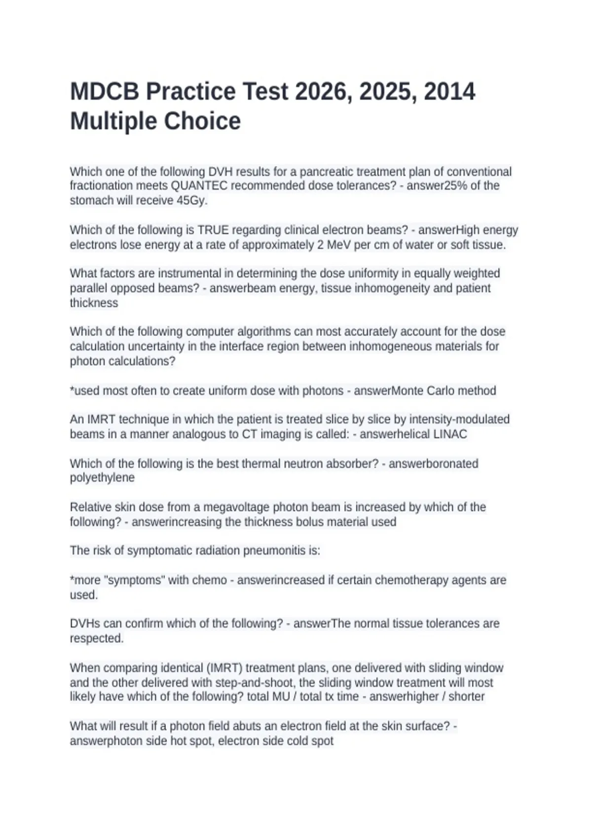 Exam (elaborations) MDCB Board Prep Questions and Answers Fully Solved Exam (elaborations) MDCB Practice Set 1 - Test 2 Questions with Correct Answers Exam (elaborations) MDCB Practice Set 3 - Test 9 2026 Questions and Answers 100% Correct Exam (elaborations) MDCB Practice Set 5 - Test 13 2026 Questions and Answers Exam (elaborations) MDCB