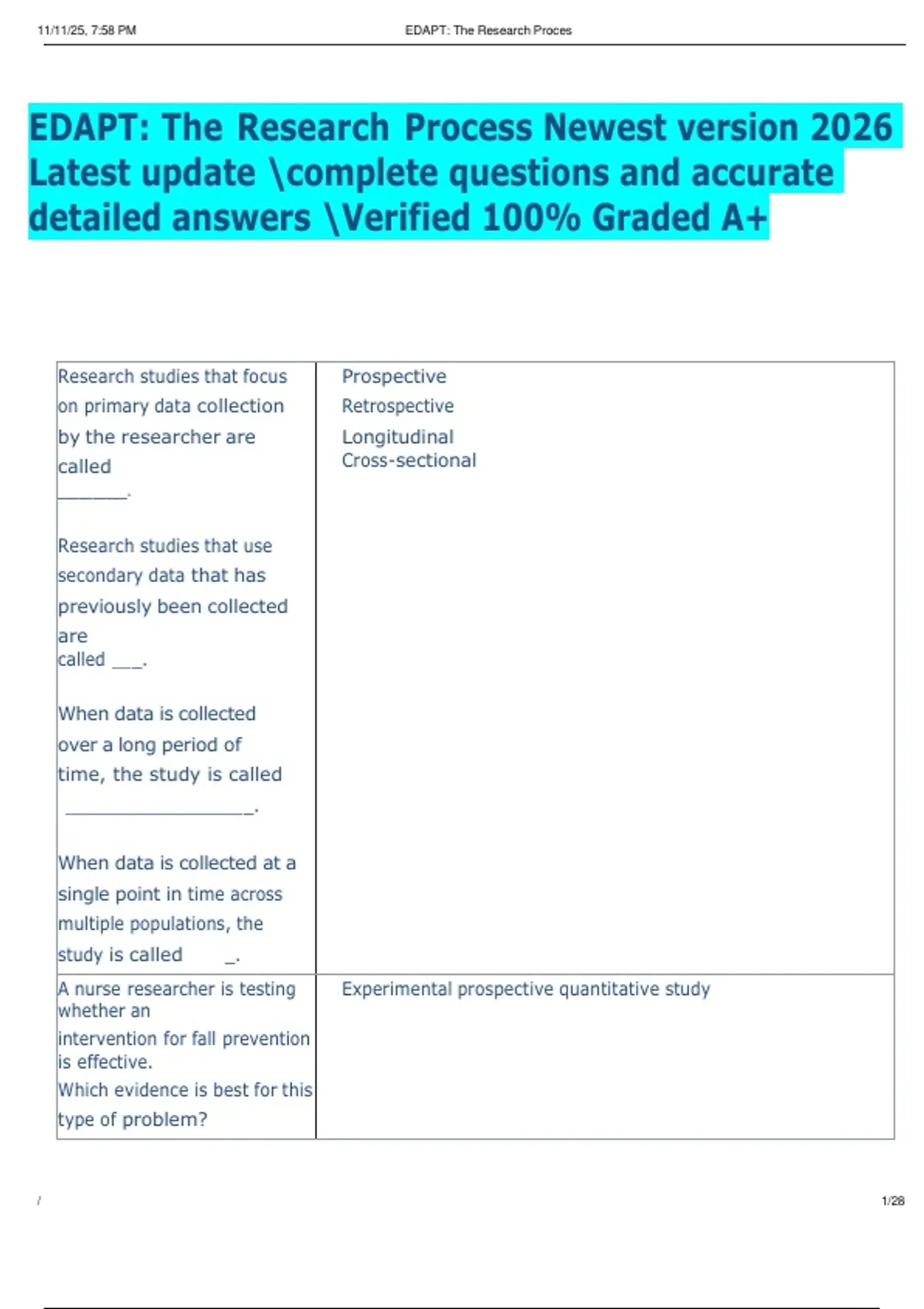 EDAPT: ACTUAL EXAM COMPLETE EXAM QUESTIONS WITH DETAILED VERIFIED ANSWERS (100% CORRECT ANSWERS) /ALREADY GRADED A+ LATEST UPDATE FOR 2026 EDAPT: ACTUAL EXAM COMPLETE EXAM QUESTIONS WITH DETAILED VERIFIED ANSWERS (100% CORRECT ANSWERS) /ALREADY GRADED A+ LATEST UPDATE FOR 2026
