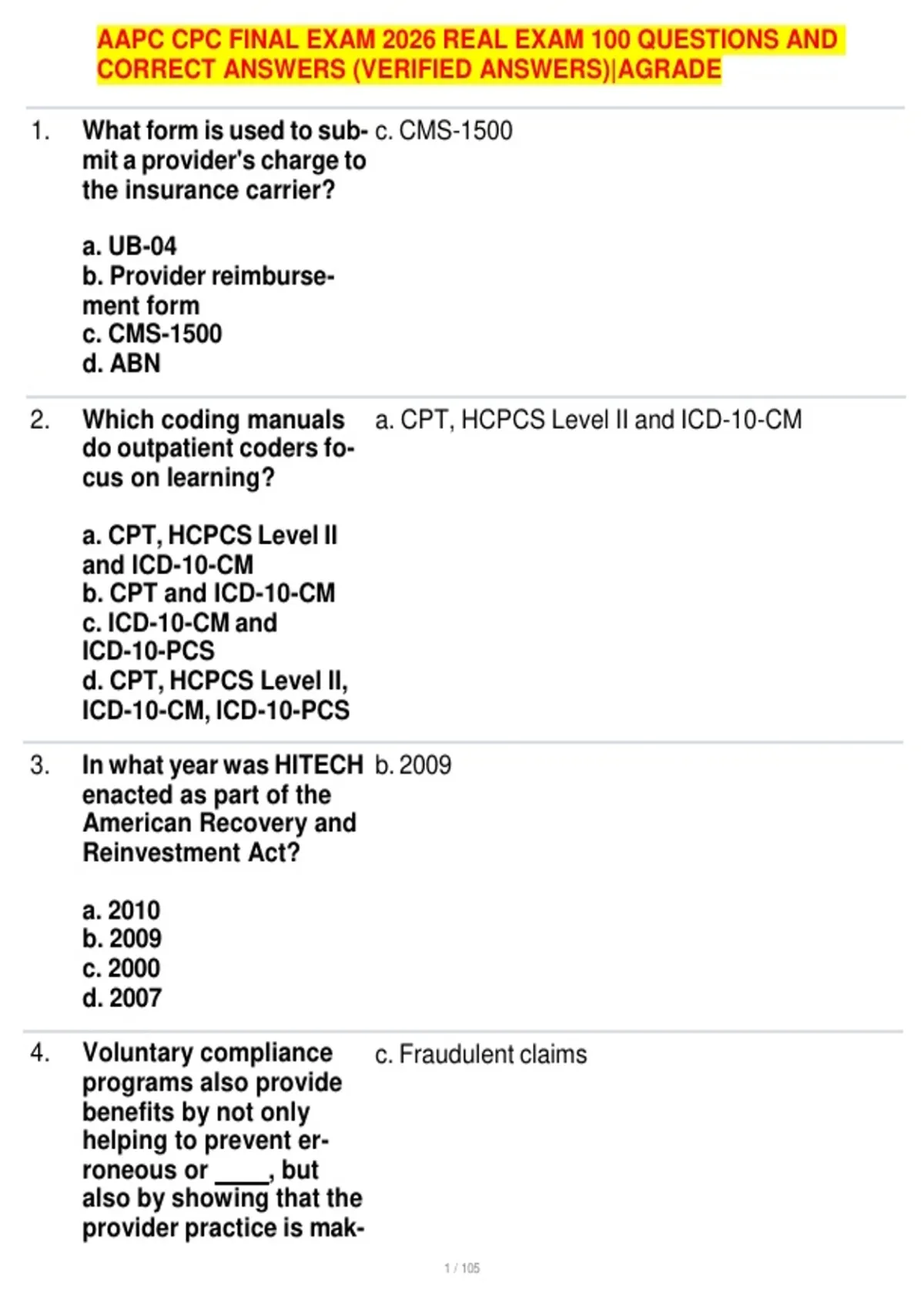 AAPC CPC BUNDLE EXAMS WITH ANSWERS