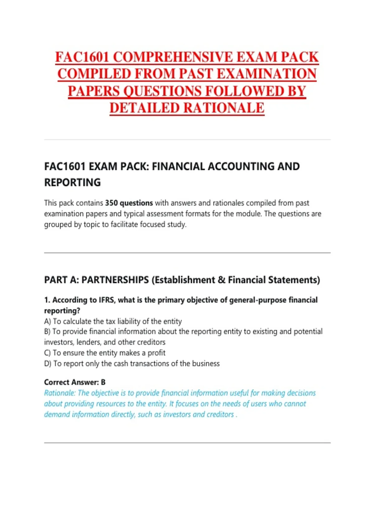 FAC1601 ASSIGNMENT COMPREHENSIVE EXAMS PACK