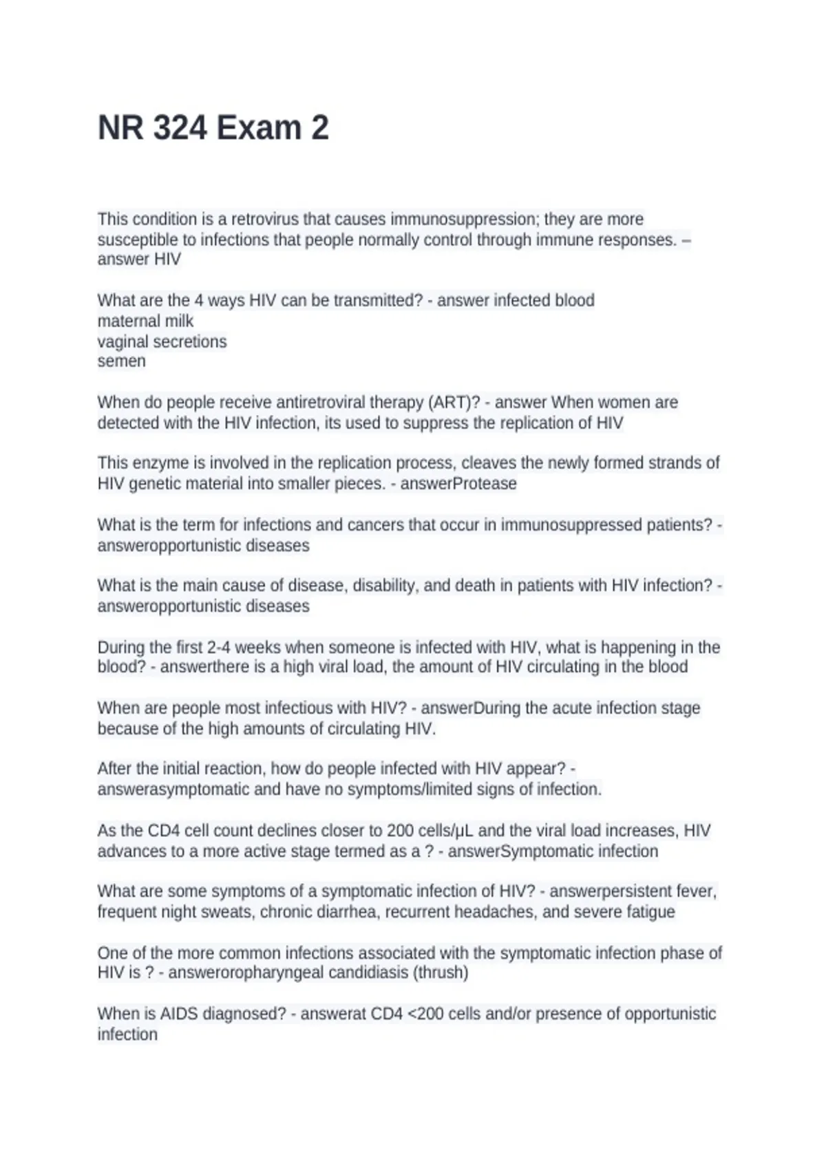 Exam (elaborations) NR-324 final Chamberlain Questions and Answers 2026 Exam (elaborations) NR 324-exam 1 fluid and electrolytes and respiratory Questions and Answers 100% Correct Exam (elaborations) NR 324. Exam 2. Questions and Answers 100% Solved Exam (elaborations) NR 324 Nursing Care of Hematologic Alterations. Questions and Answers 202
