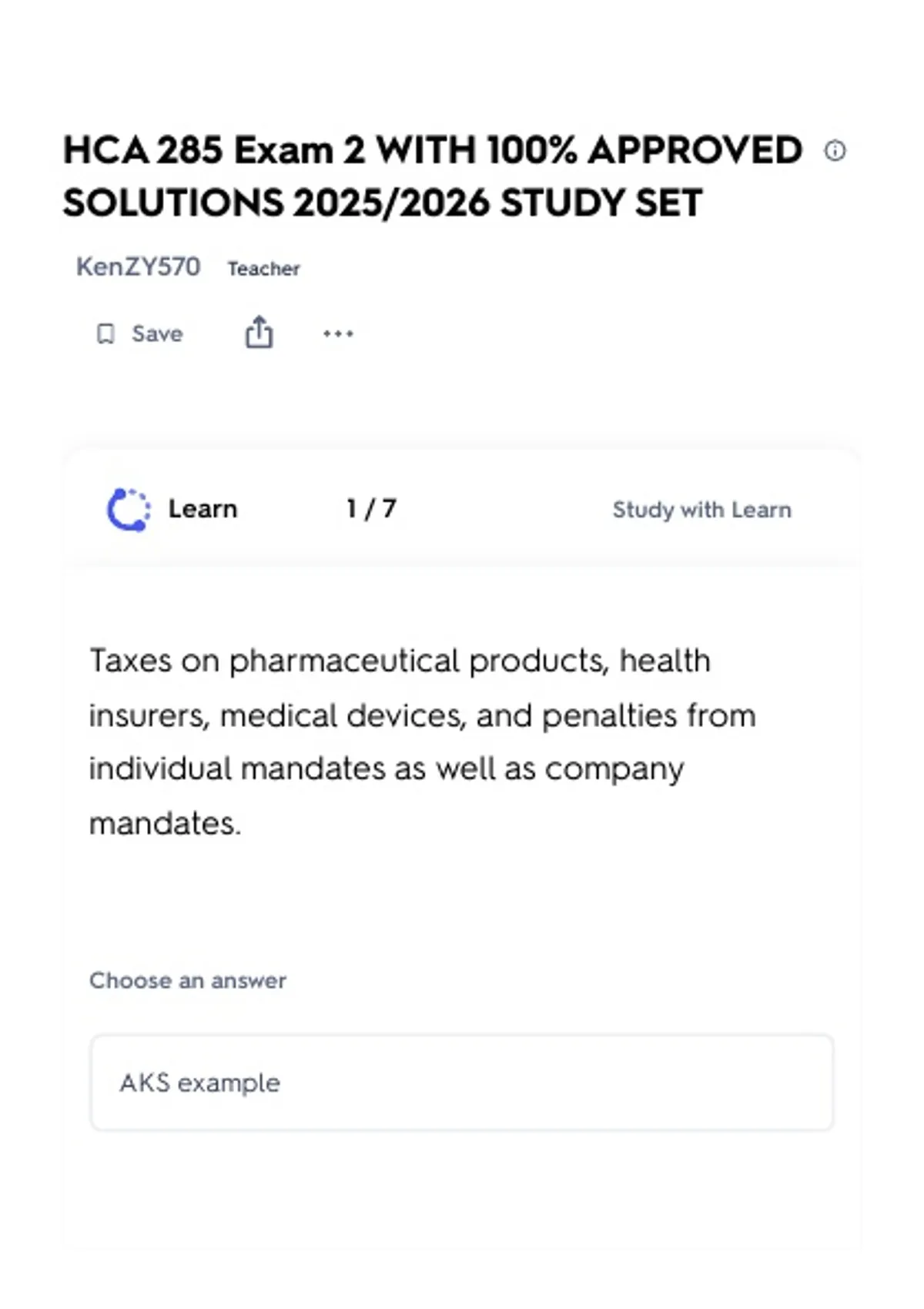 HCA 285 BUNDLE WITH 100% APPROVED SOLUTIONS 2025/2026 STUDY SET