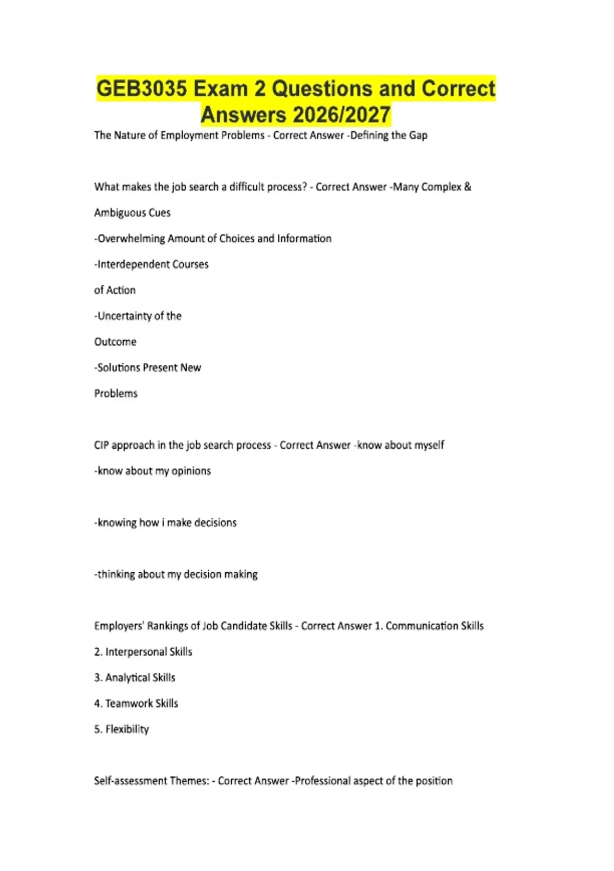 GEB 3035 - Exam 2 Questions and Correct Answers 2026/2027