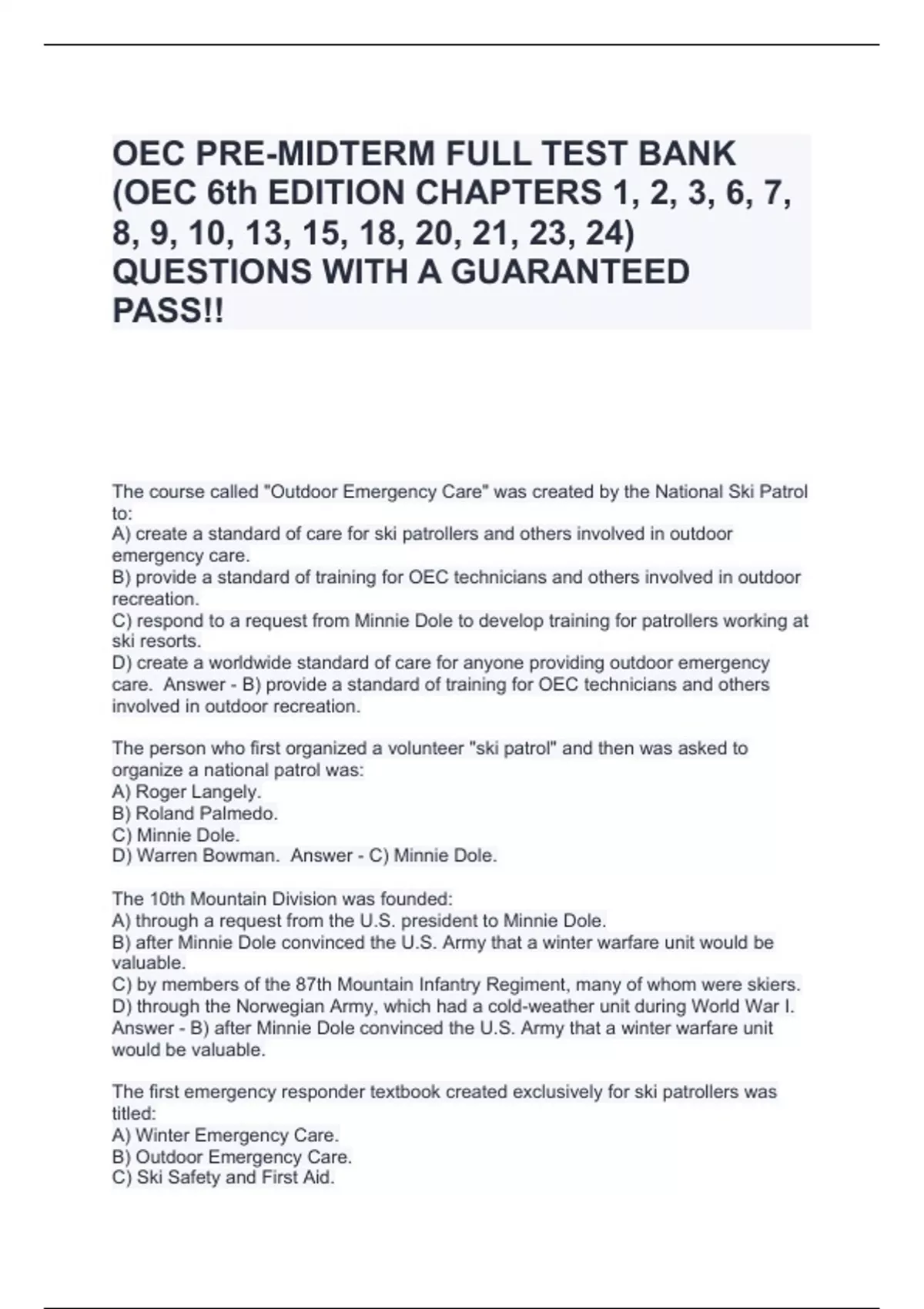 OEC EXAM TEST BANK QUESTIONS WITH ALL CORRECT ANSWERS!!,OEC FINAL 2024 (STUDYING FOR THE OEC FINAL FOR 2024) EXAM QUESTION BANK 100% CORRECT!!,OEC FINAL EXAM STUDY GUIDE | 100 QUESTIONS | WITH COMPLETE 2024/25 ANSWERS!!,OEC FINAL PRACTICE EXAM |100 QUESTIONS| WITH COMPLETE ANSWERS!!,OEC PRE-MIDTERM FULL TEST BANK (OEC 6th EDITION CHAPTERS 1, 2, 3,