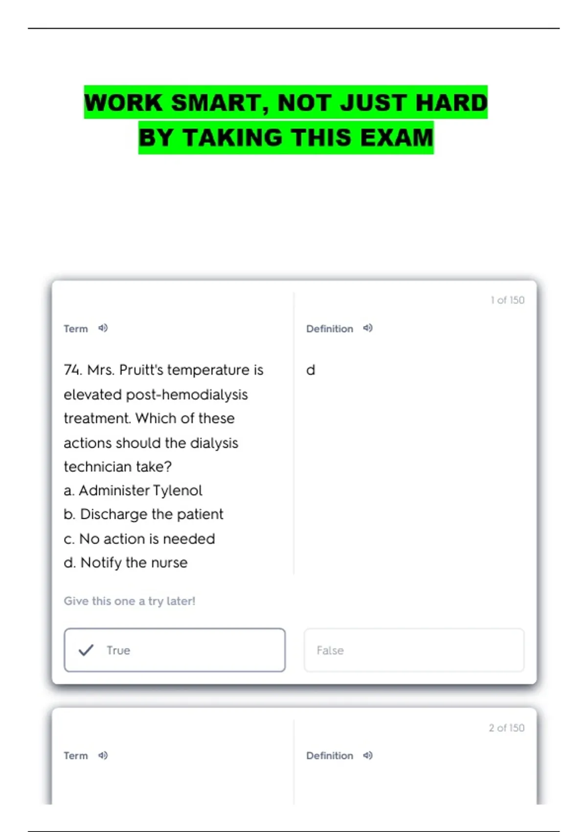 DAVITA CCHT PRACTICE EXAM QUESTIONS AND CORRECT ANSWERS