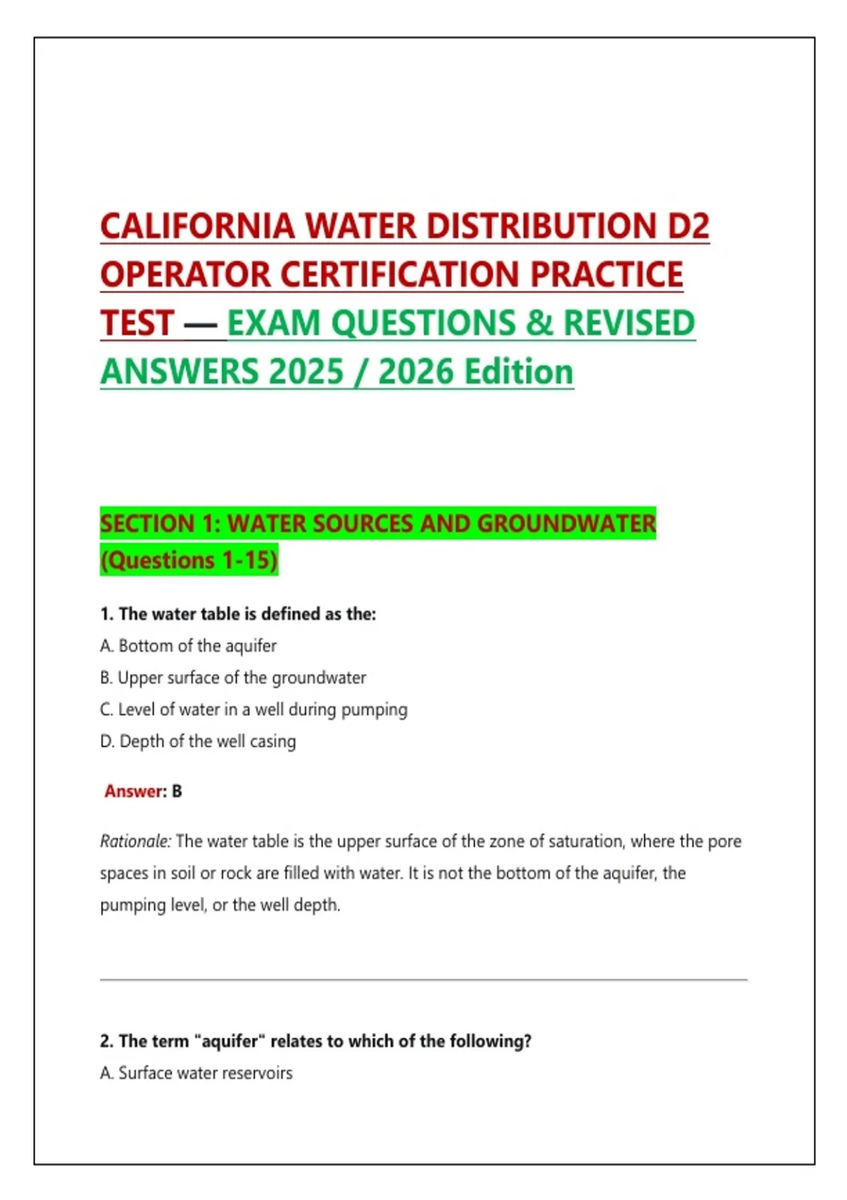 WATER DISTRIBUTION MATH PRACTICE QUESTIONS