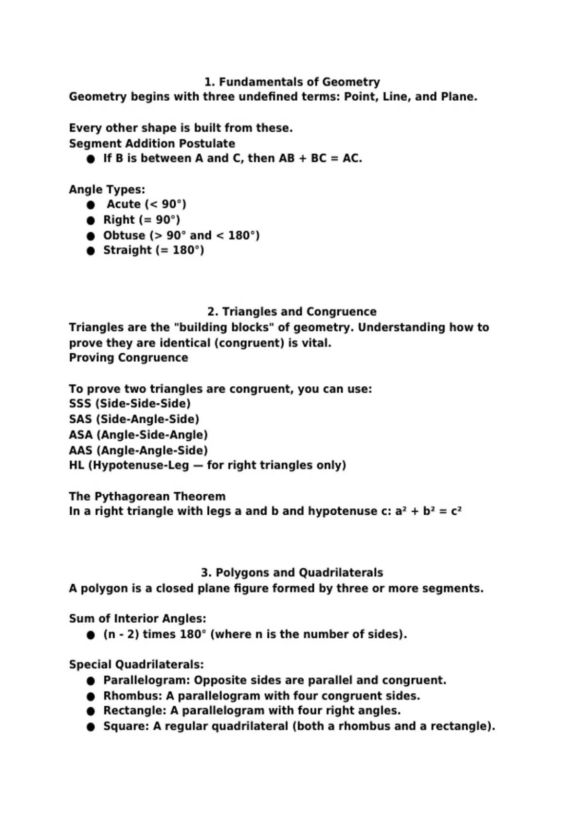 This document covers key concepts in geometry, including angles, triangles, circles, and coordinate geometry. It includes clear explanations and formulas to reinforce understanding. The material is suitable for high school students preparing for exams or needing a complete overview of core geometry topics. Package includes 2 bacis and 1 advanced.