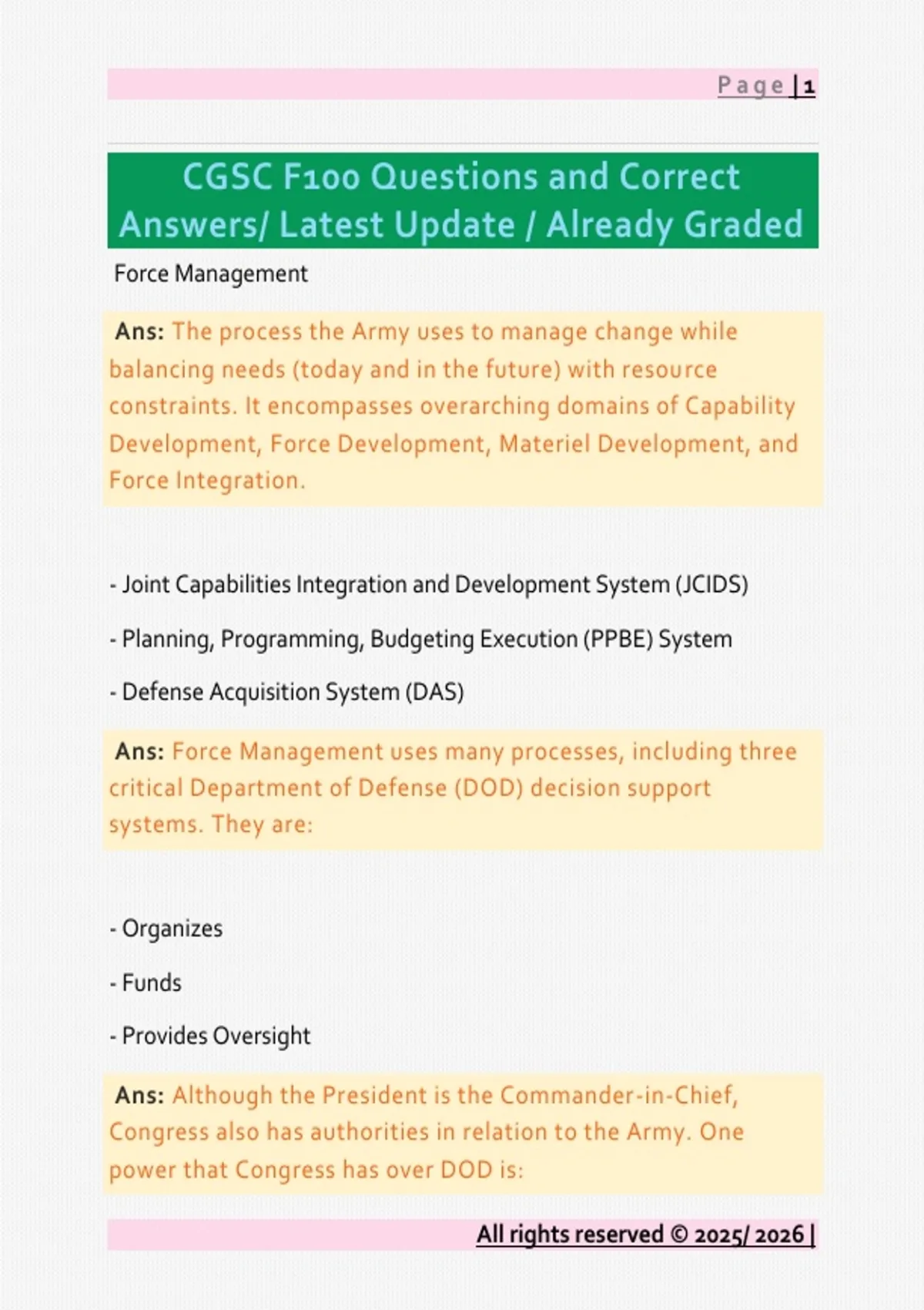 F100 Questions and Correct Answers/ Latest Update / Already Graded