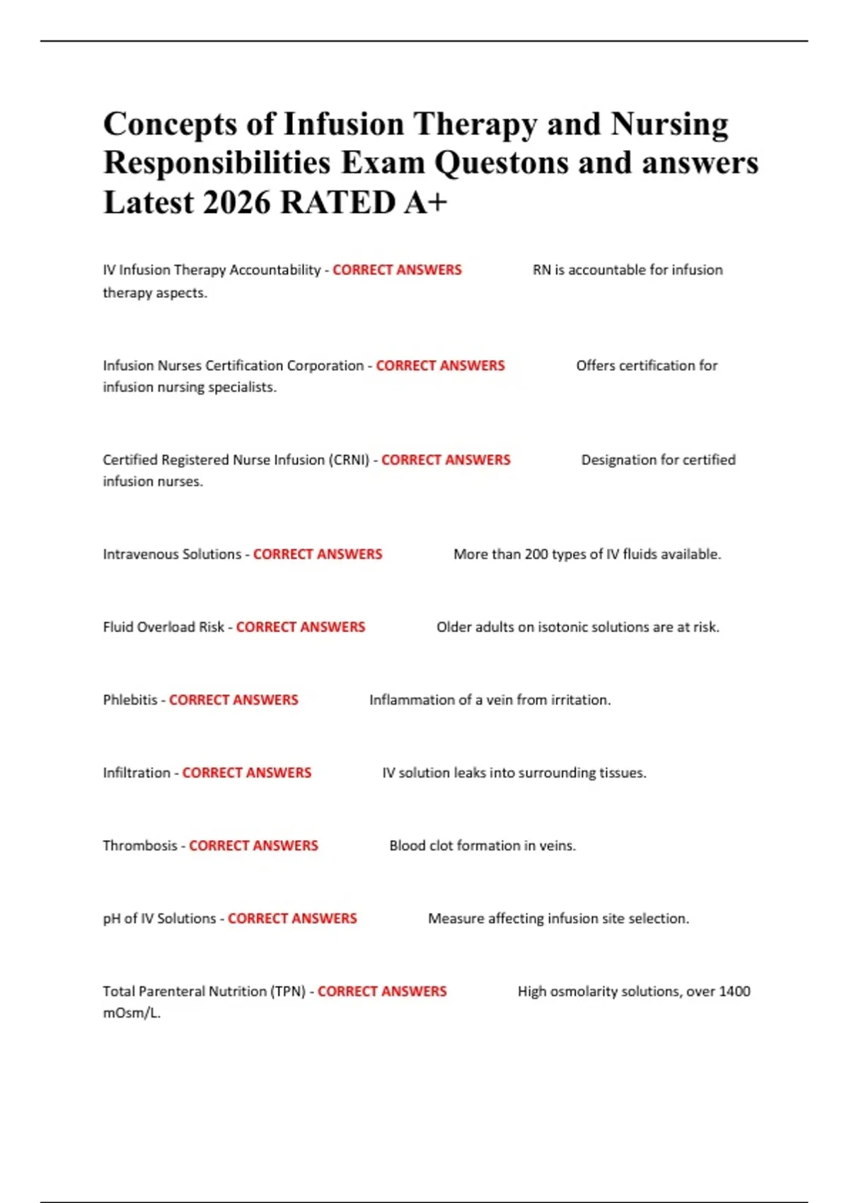 Infusion Nurses Certification Corporation - CORRECT ANSWERS Offers certification for