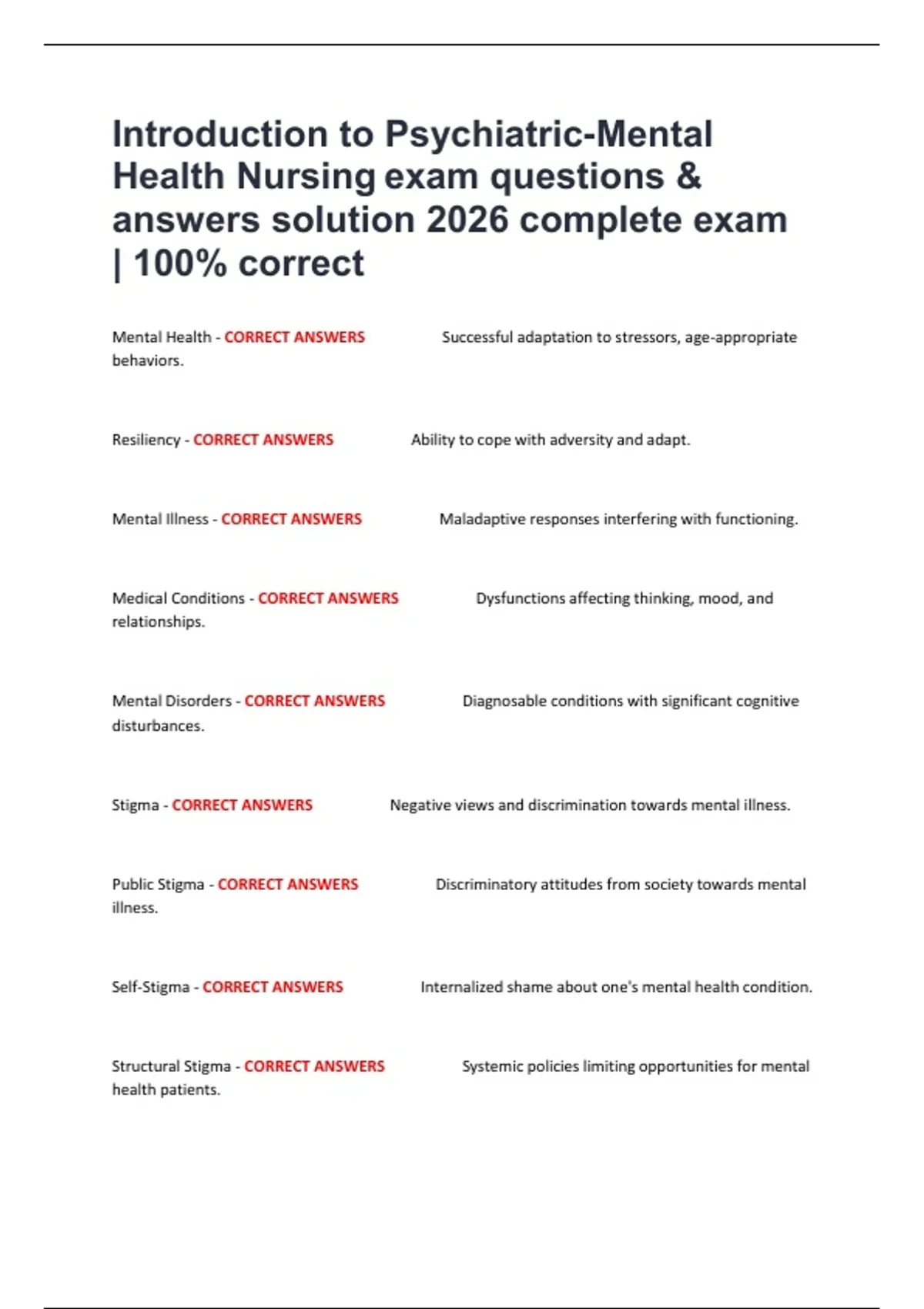 Mental Health - CORRECT ANSWERS Successful adaptation to stressors, age-appropriate