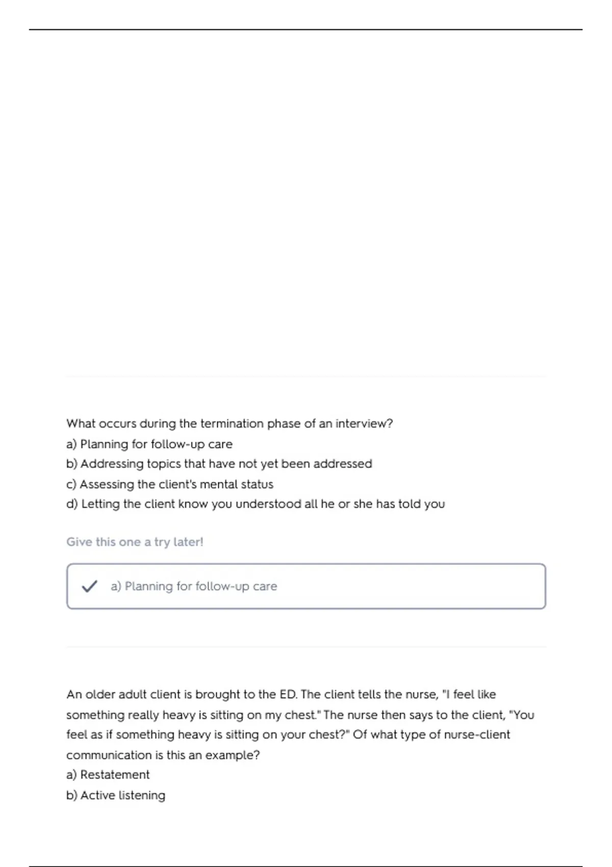 feel as if something heavy is sitting on your chest?" Of what type of nurse-client