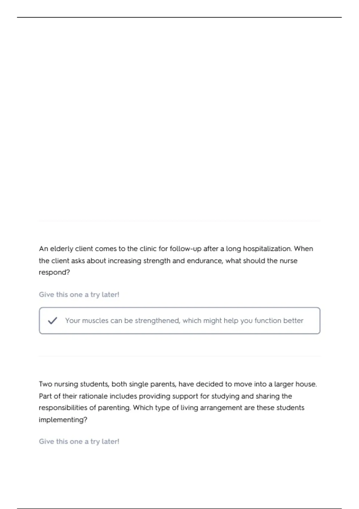An elderly client comes to the clinic for follow-up after a long hospitalization. When