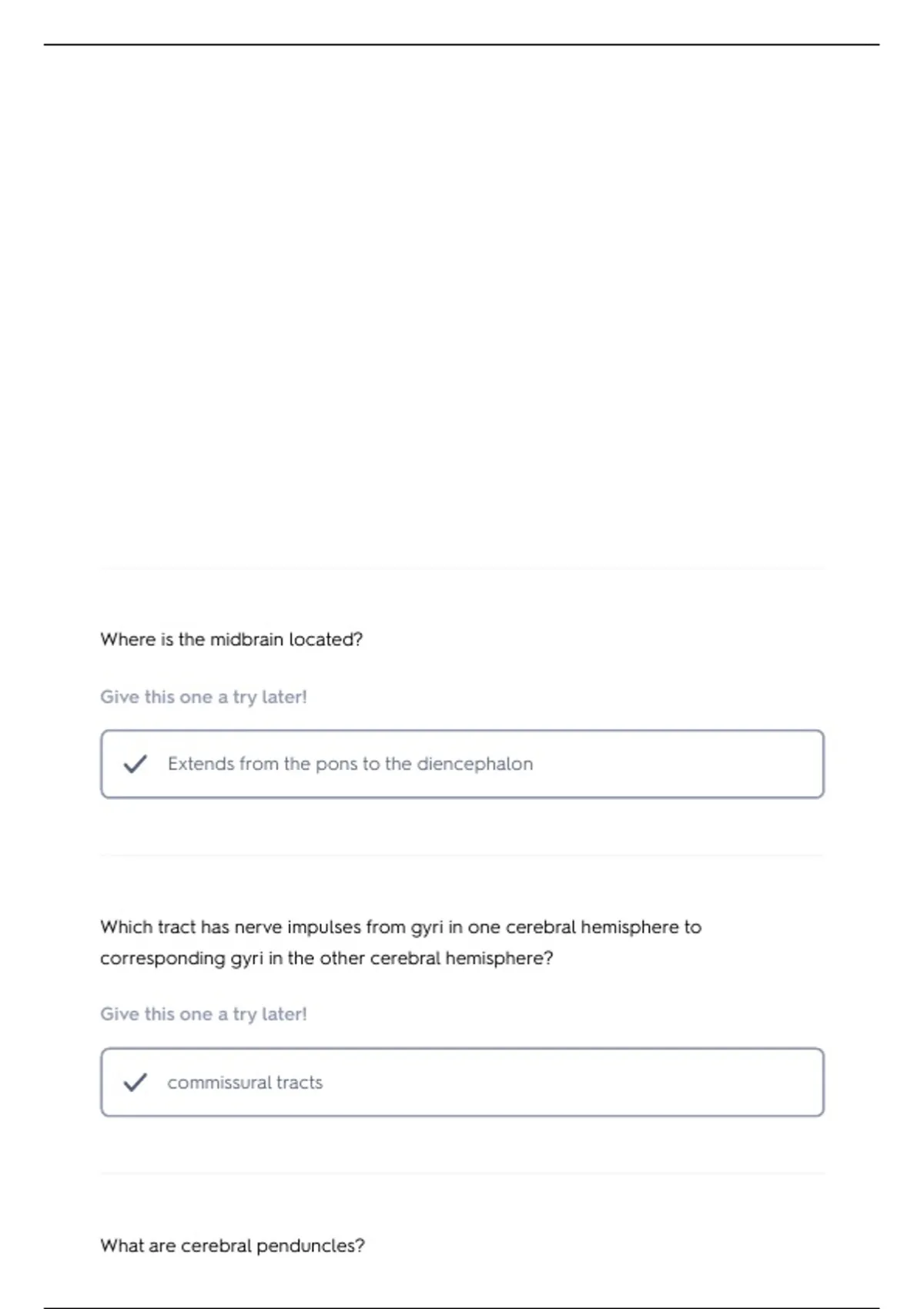 Which tract has nerve impulses from gyri in one cerebral hemisphere to