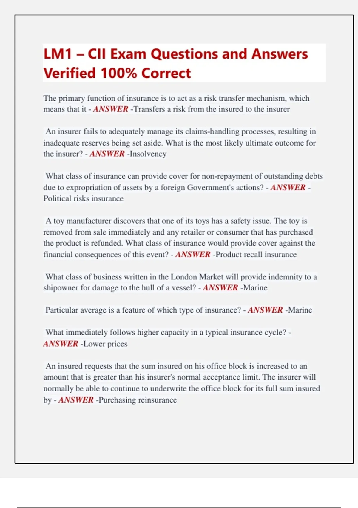 by - ANSWER -Purchasing reinsurance