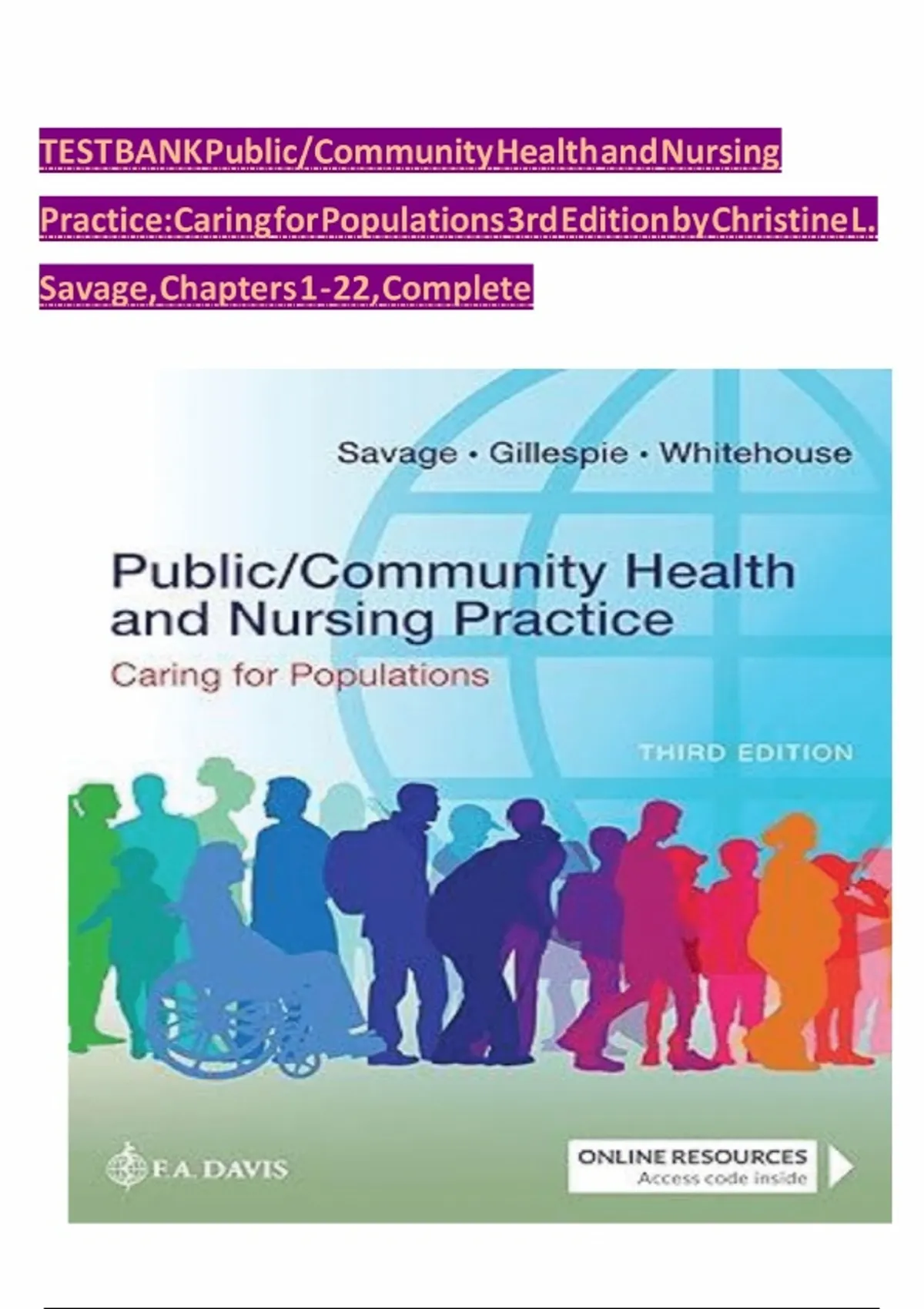 Test Bank for Public/Community Health and Nursing Practice Caring for Populations 3rd Edition by Christine L. Savage.|All chapters 1-22 covered, Graded A+.