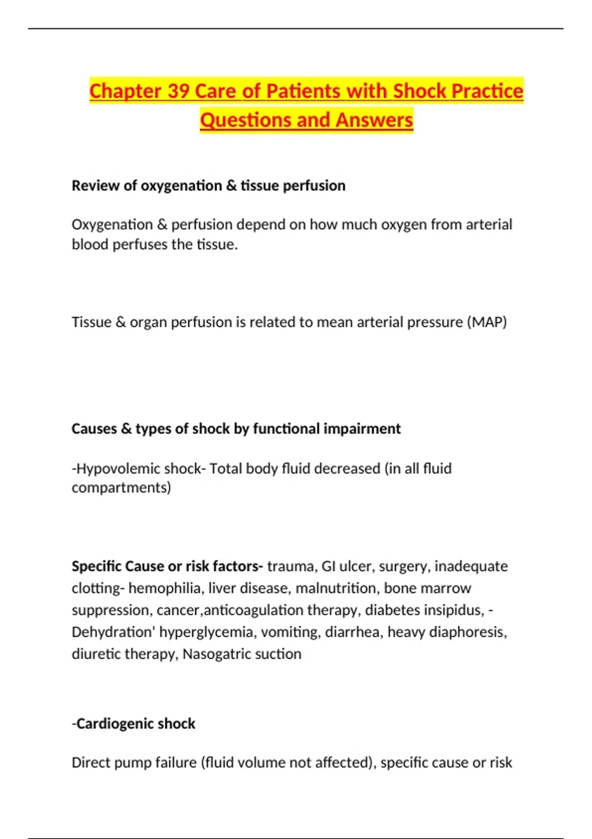 Chapter 39 Care of Patients with Shock Practice Questions and Answers.