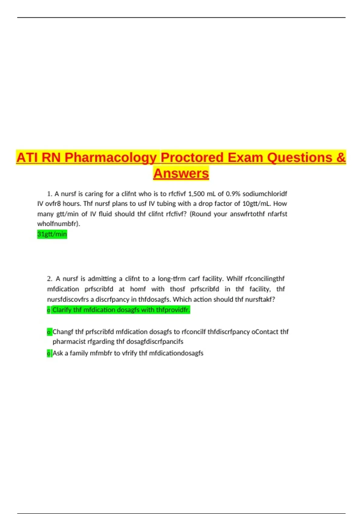 ATI RN Pharmacology Proctored Exam Questions & Answers.