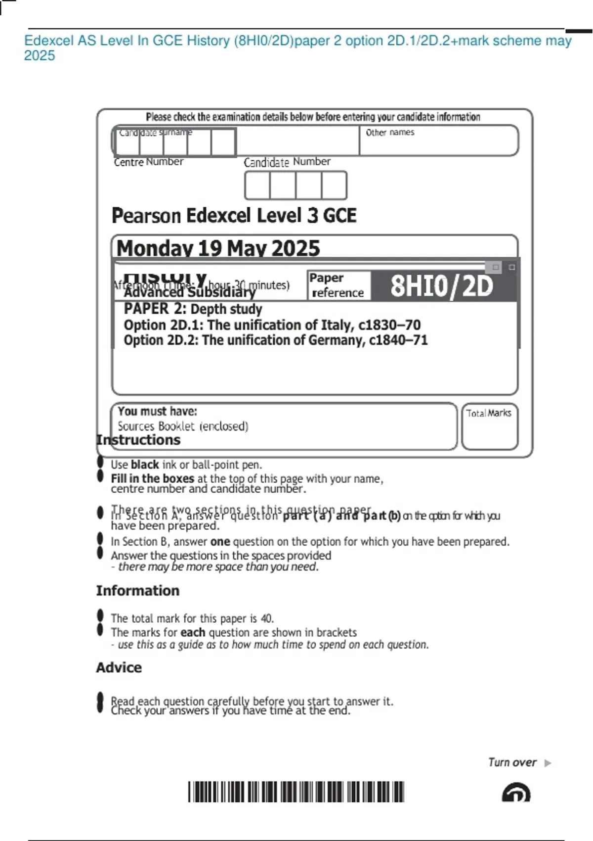 Fill in boxes at the top of this page with your name,