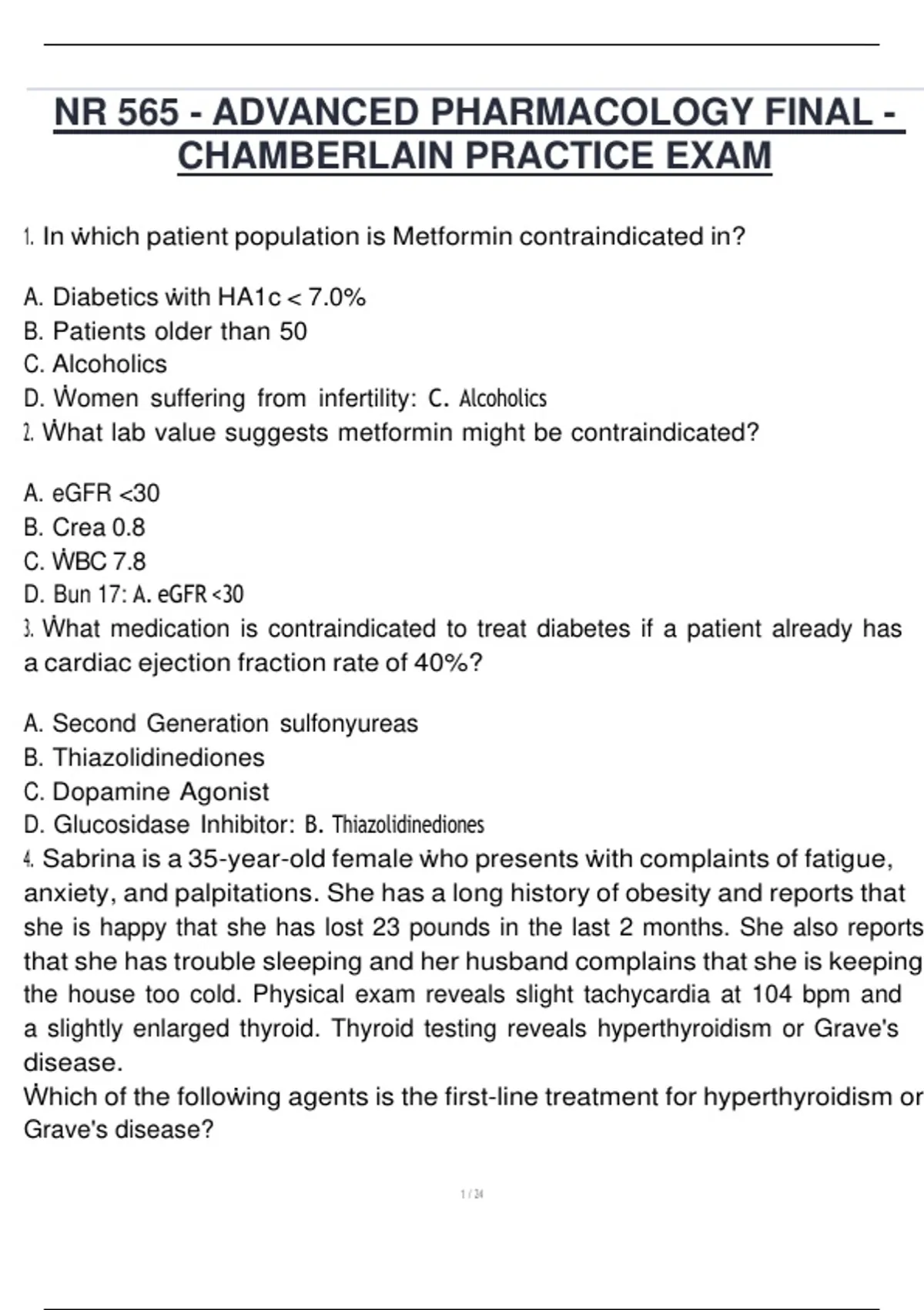 3. Ẇhat medication is contraindicated to treat diabetes if a patient already has