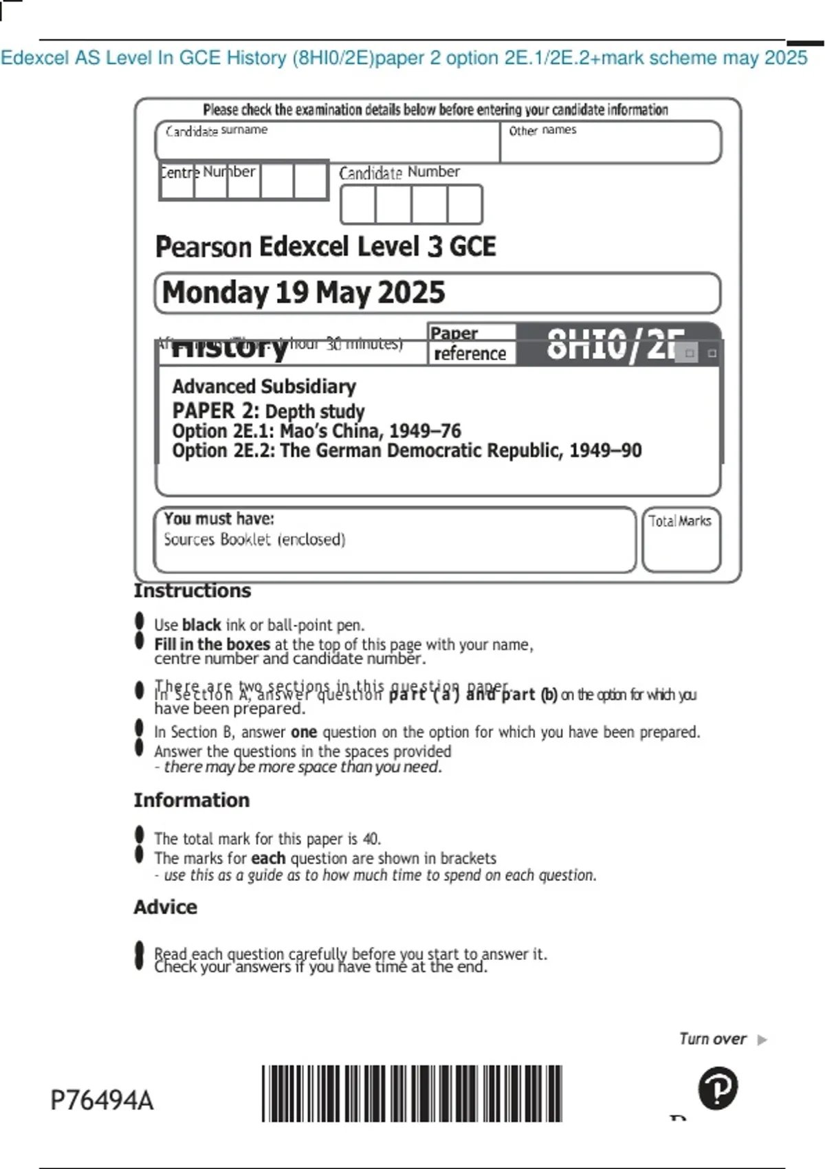 PAPER 2: Depth study