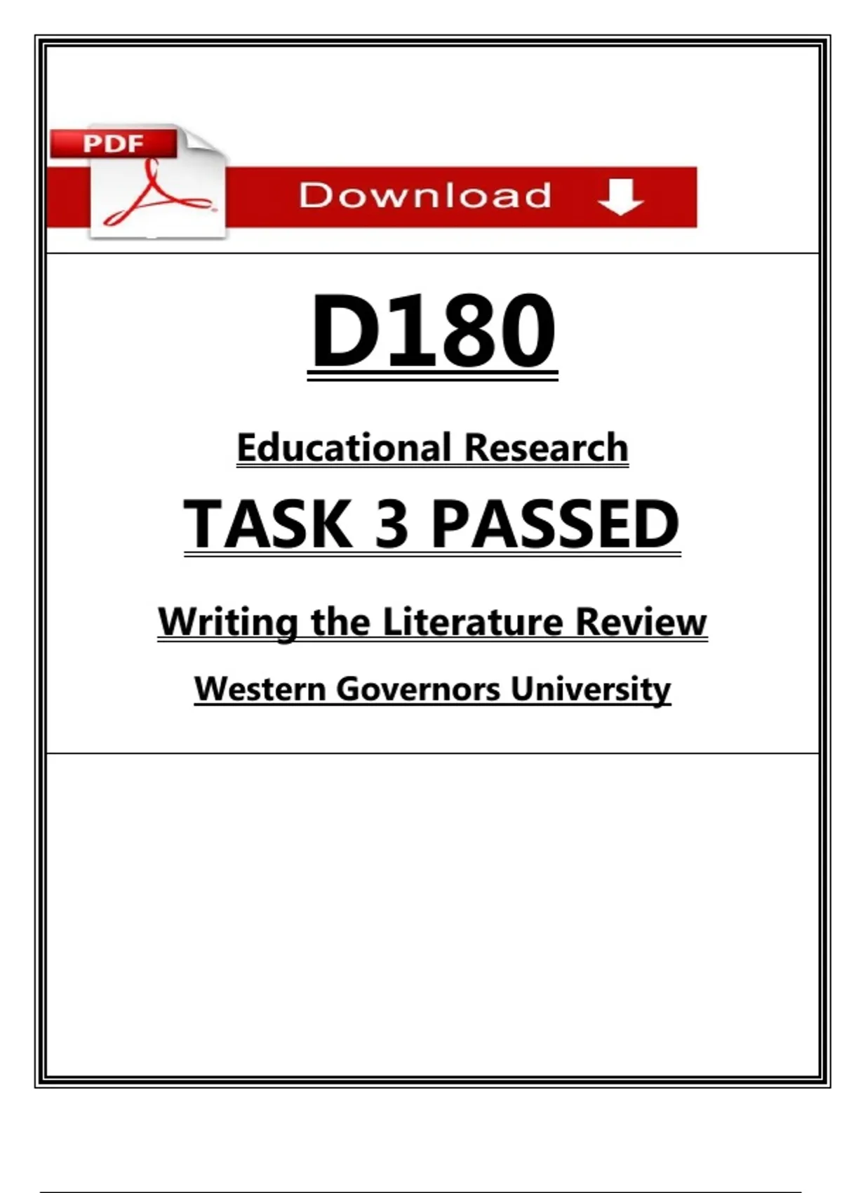 WGU D180 Task 3 Passed Guide (2026) – Educational Research – Literature Review – PDF