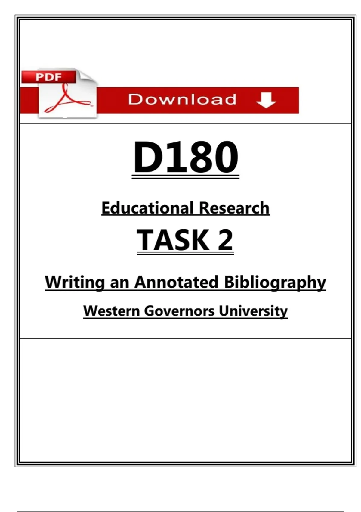 WGU D180 Task 2 Guide (2026) – Educational Research – Annotated Bibliography – PDF