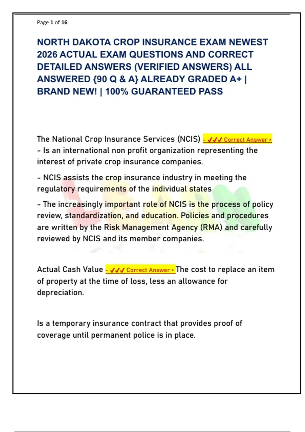 The National Crop Insurance Services (NCIS) - ✔✔✔ Correct Answer >