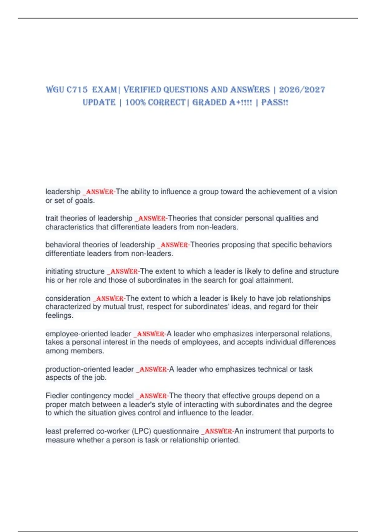 Fiedler contingency model _answer-The theory that effective groups depend on a
