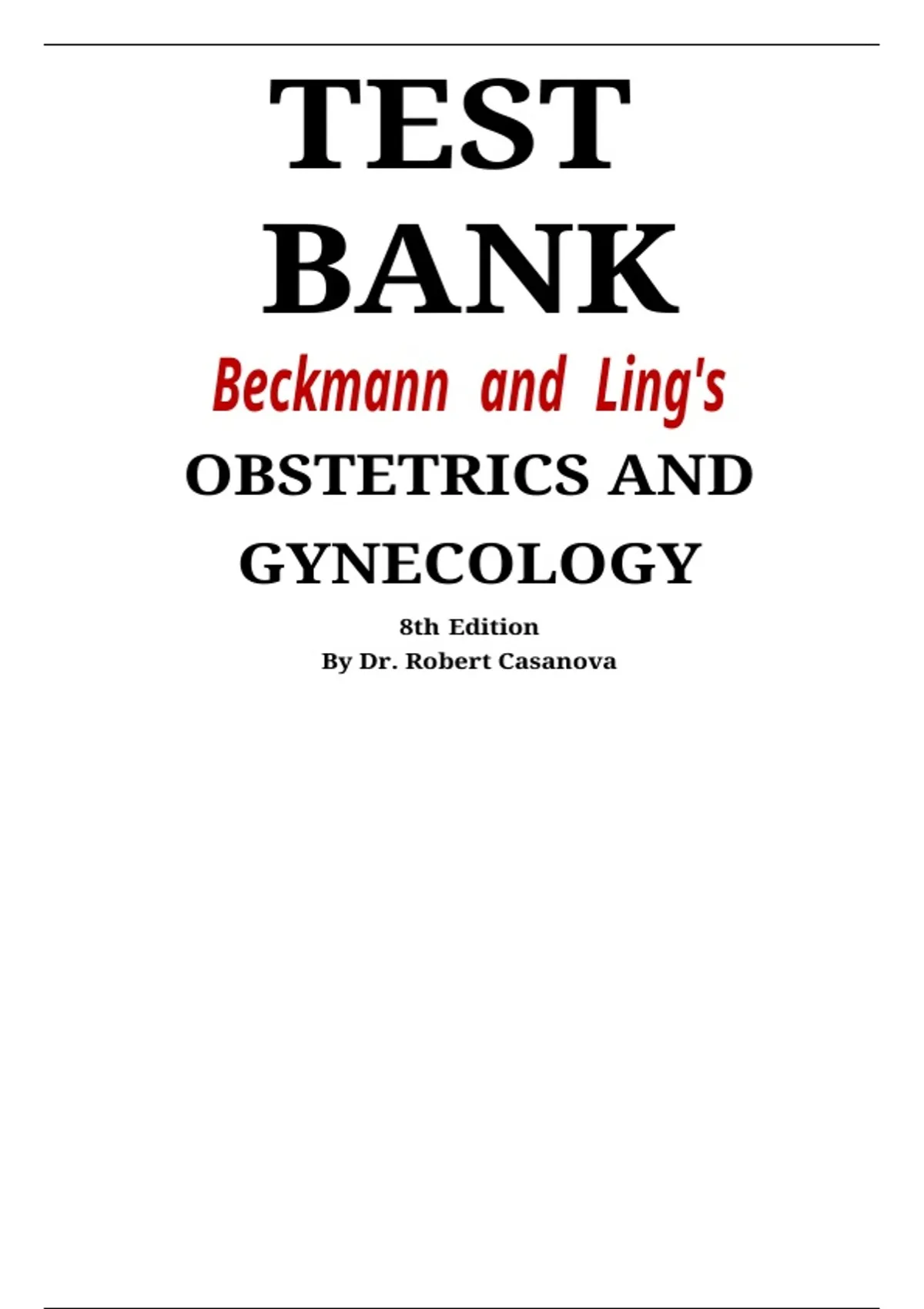 ,Beckmann and Ling's Obstetrics and Gynecology Edition 8th edition Test Bank