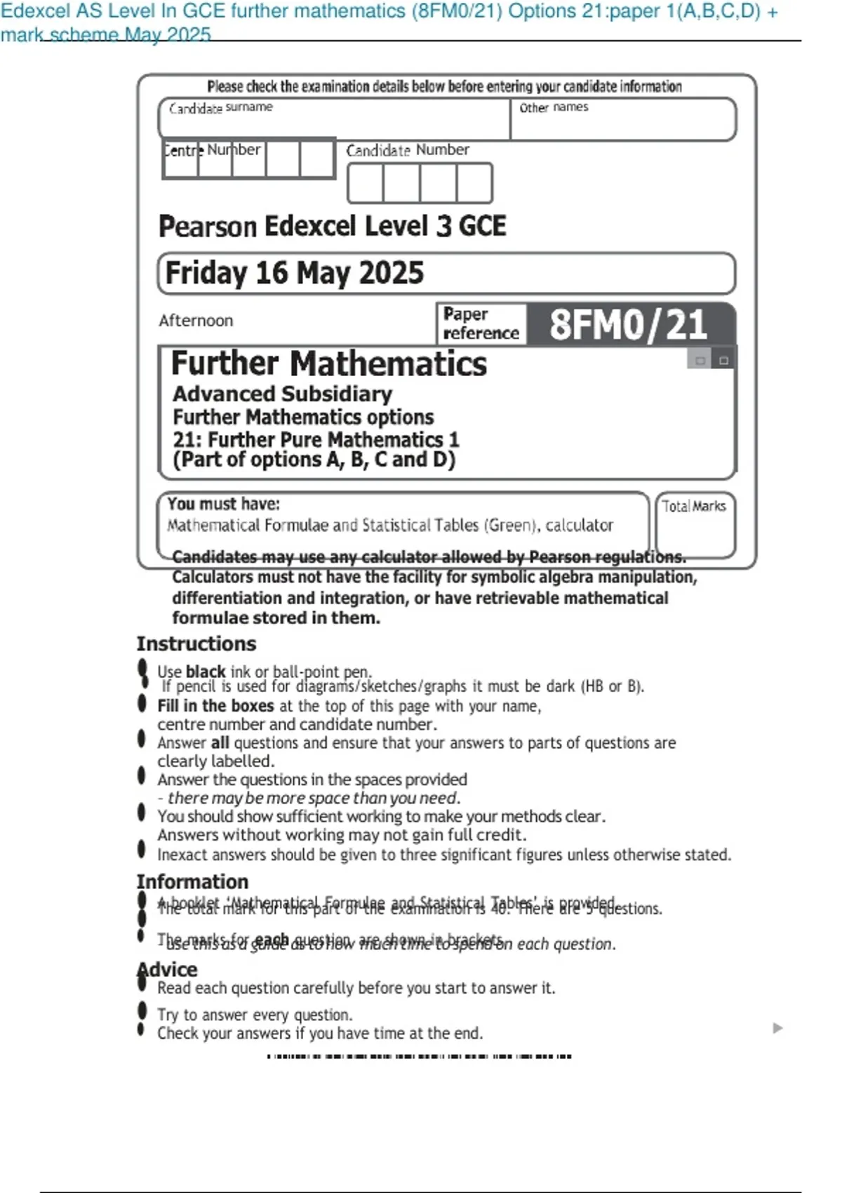 • Inexact answers should be given to three significant figures unless otherwise stated.