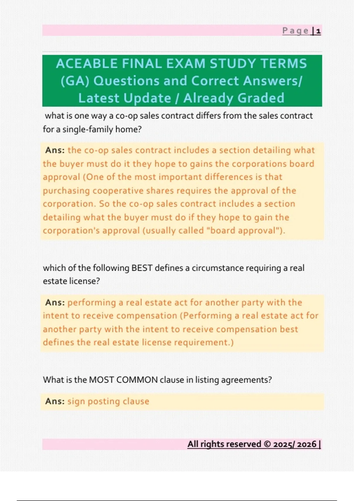 (GA) Questions and Correct Answers/