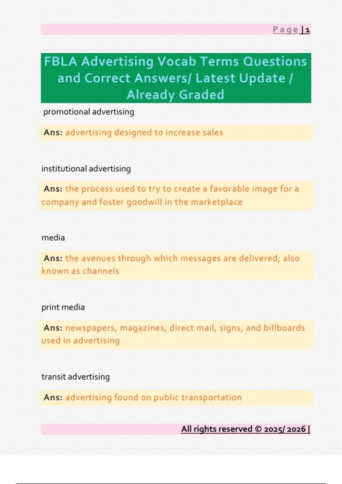 FBLA Advertising Vocab Terms Questions