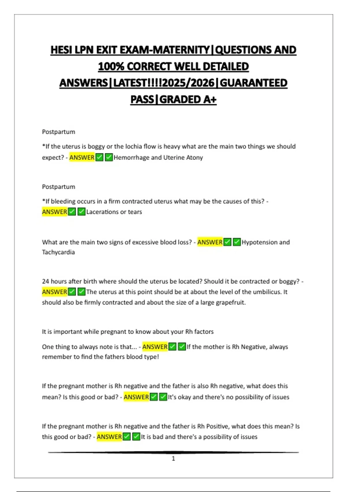 HESI LPN EXIT EXAM-MATERNITY|QUESTIONS AND 100% CORRECT WELL DETAILED ANSWERS|LATEST!!!!2025/2026|GUARANTEED PASS|GRADED A+
