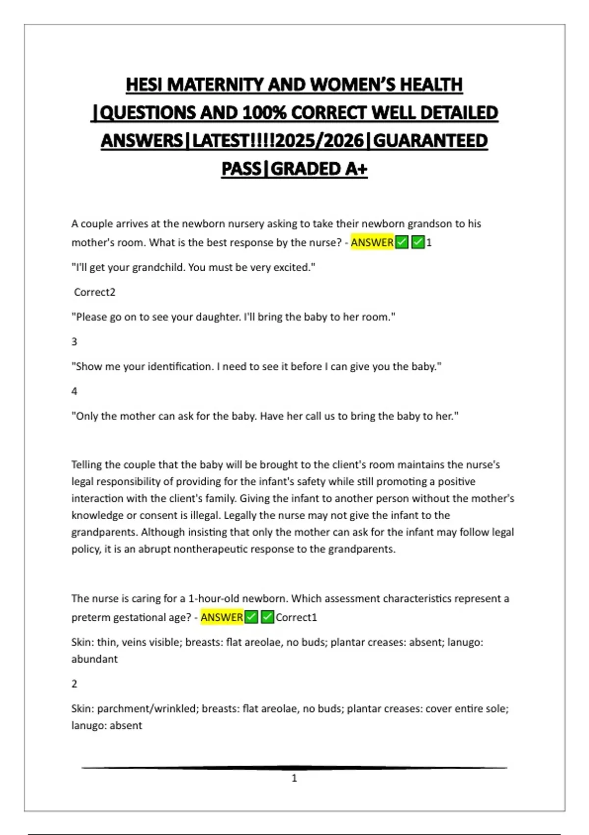 preterm gestational age? - ANSWER Correct1