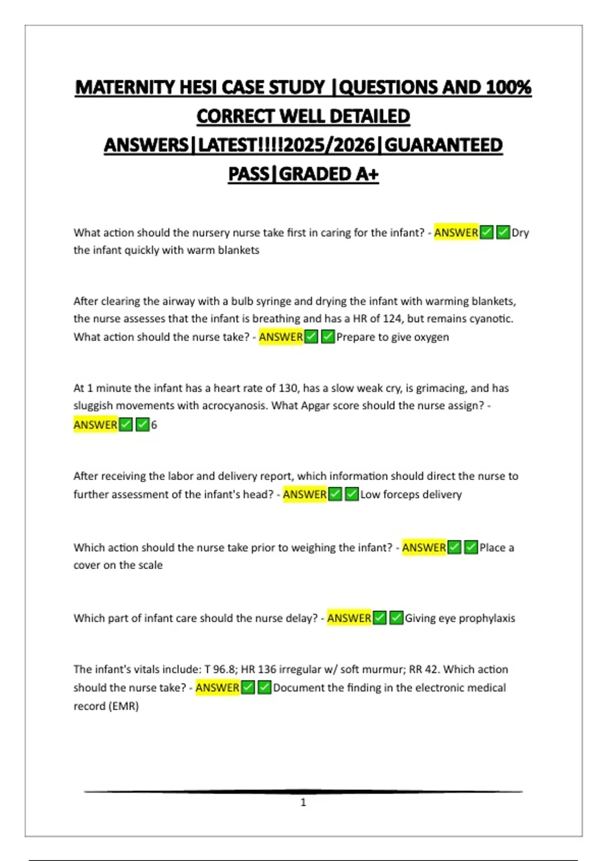 Which part of infant care should the nurse delay? - ANSWER Giving eye prophylaxis