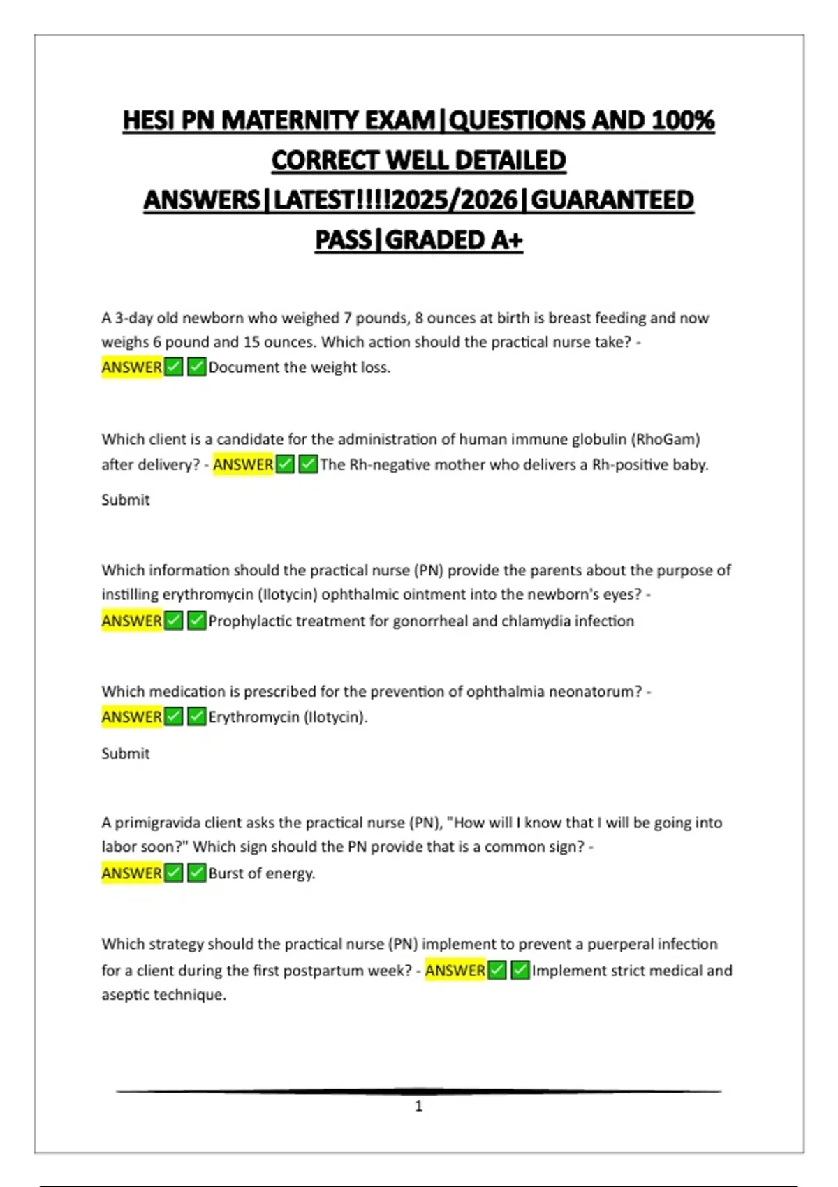 HESI PN MATERNITY EXAM|QUESTIONS AND 100% CORRECT WELL DETAILED ANSWERS|LATEST!!!!2025/2026|GUARANTEED PASS|GRADED A+