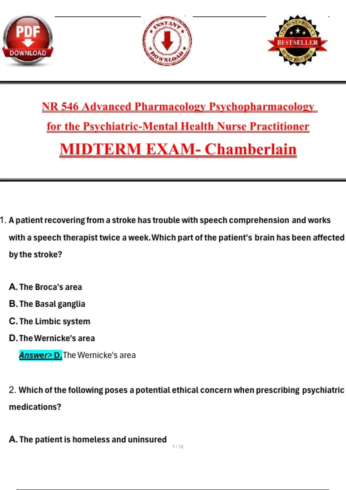 MIDTERM EXAM- Chamberlain