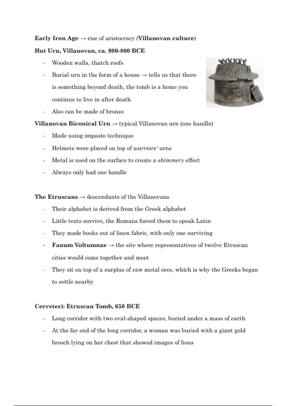 Villanovan Biconical Urn → typical Villanovan urn (one handle)