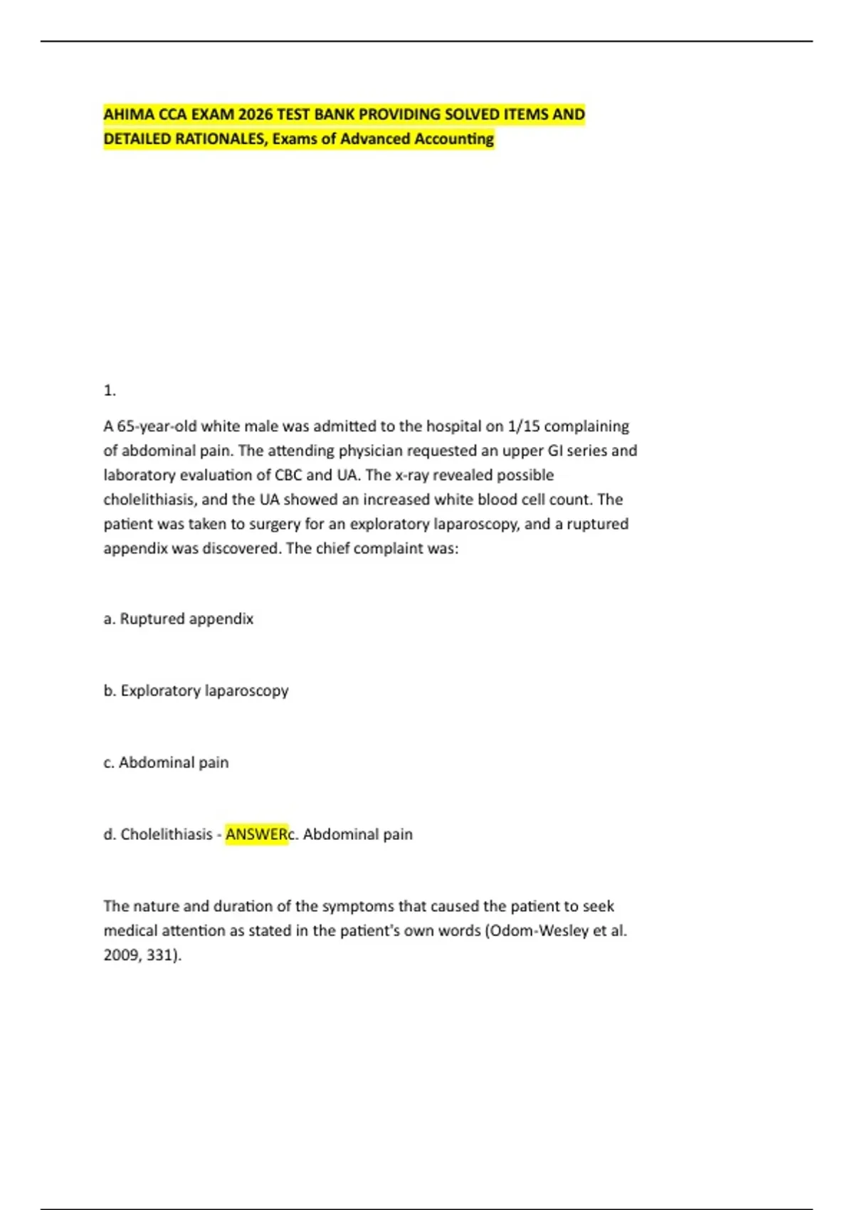 AHIMA CCA EXAM 2026 TEST BANK PROVIDING SOLVED ITEMS AND