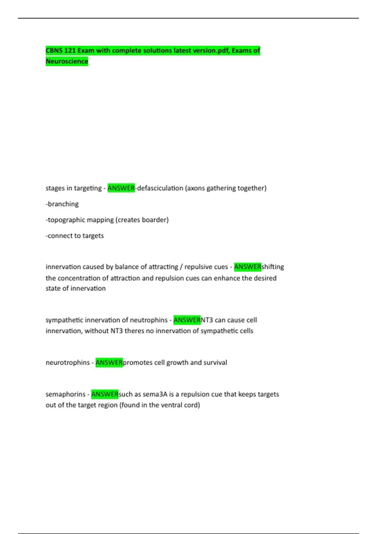CBNS 121 Exam with complete solutions latest , Exams of Neuroscience