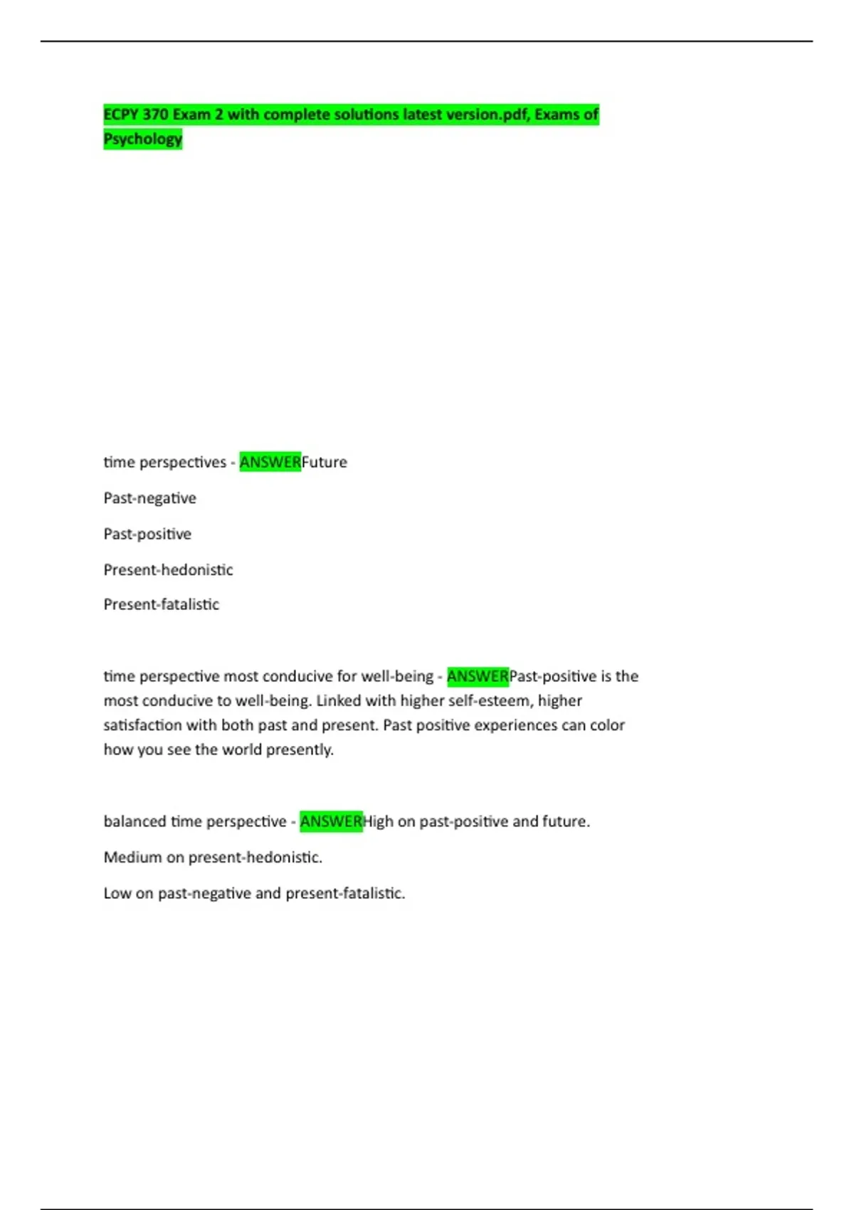 ECPY 370 Exam 2 with complete solutions latest , Exams of Psychology