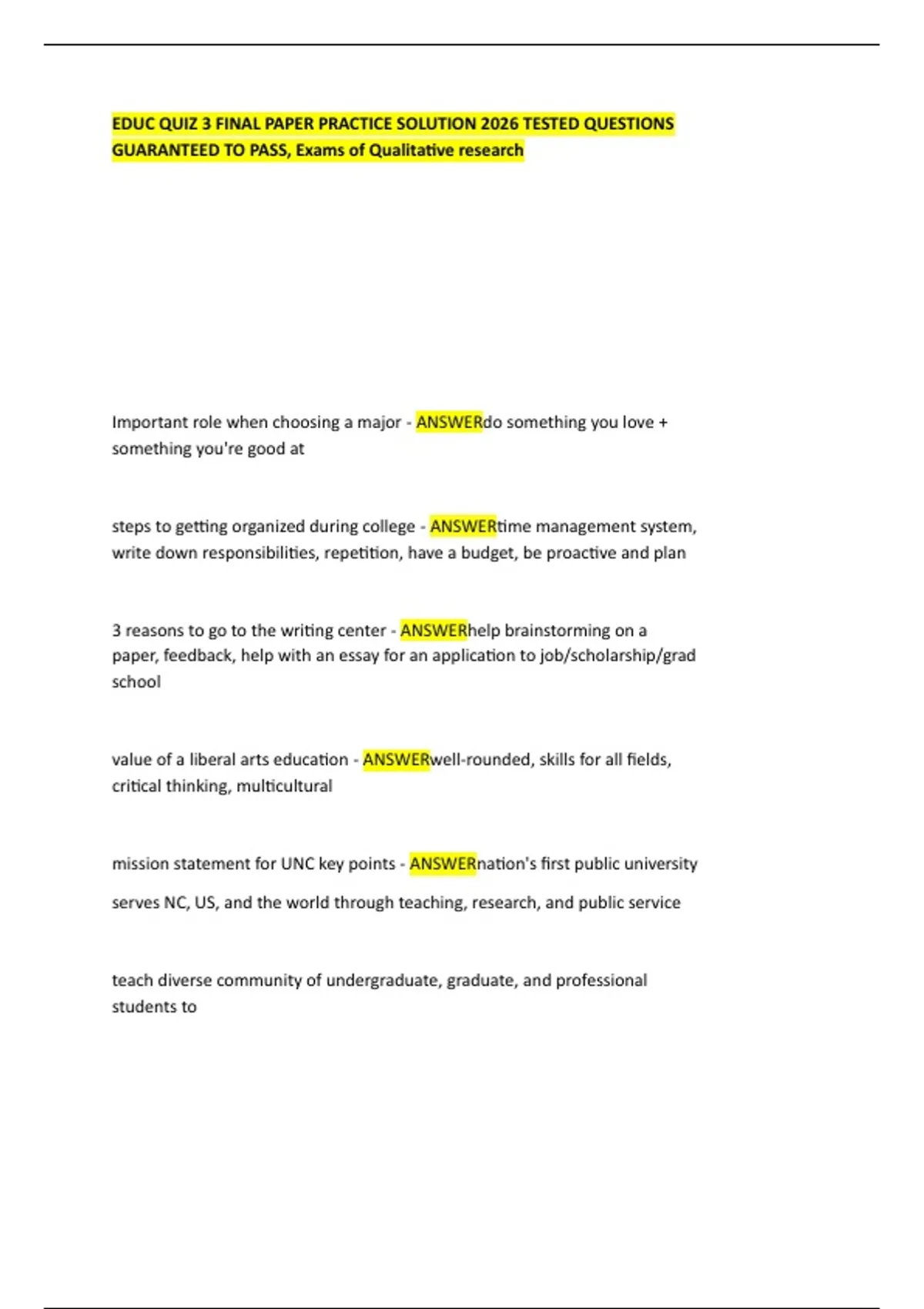 GUARANTEED TO PASS, Exams of Qualitative research