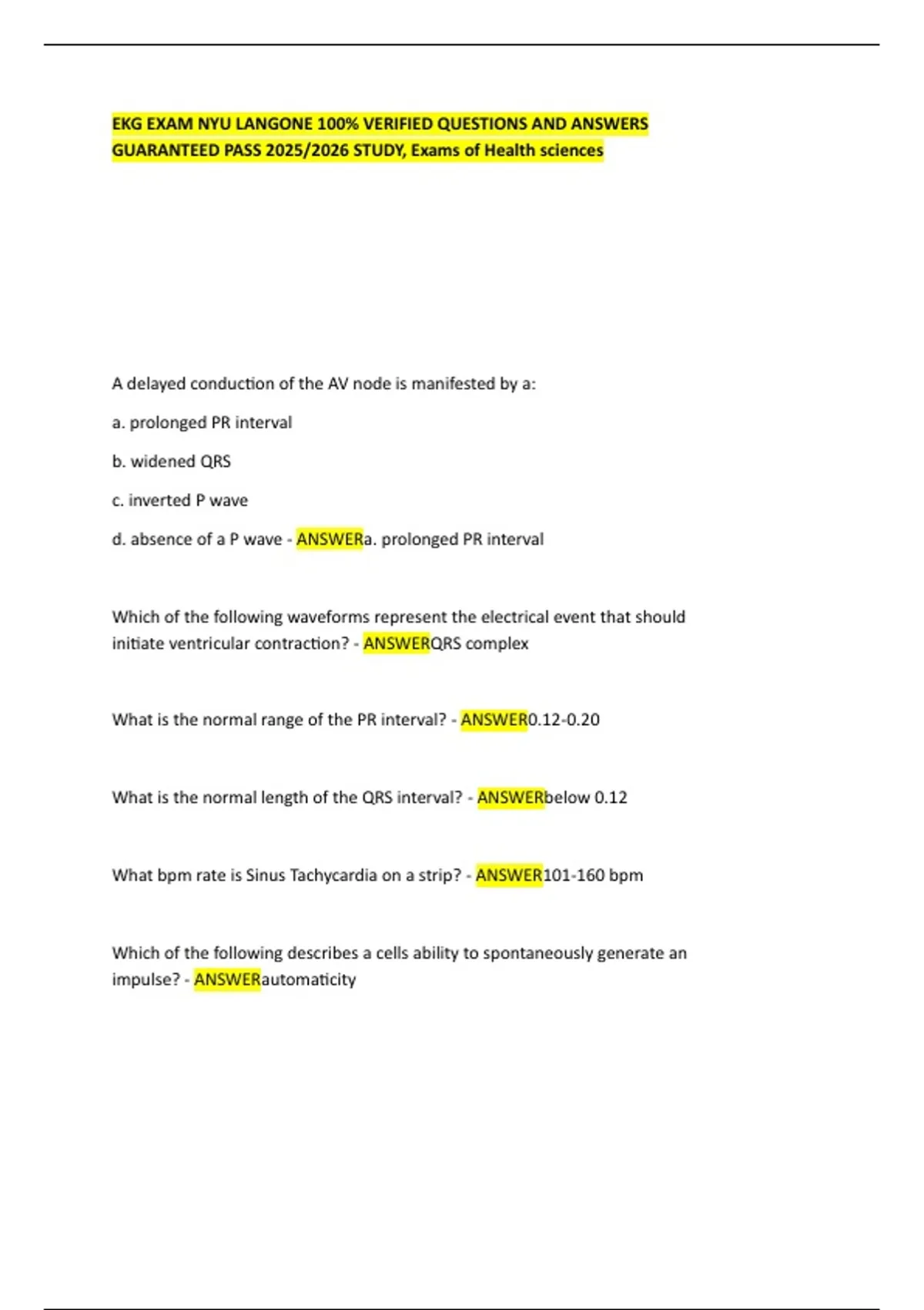 EKG EXAM NYU LANGONE 100% VERIFIED QUESTIONS AND ANSWERS