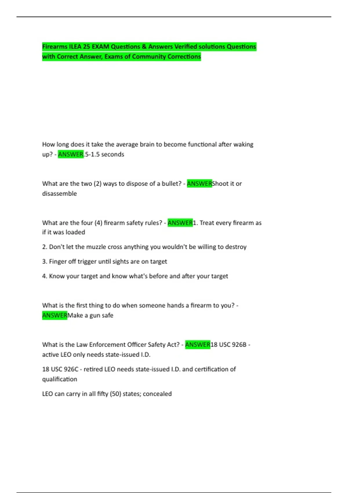 Firearms ILEA 25 EXAM Questions & Answers Verified solutions Questions
