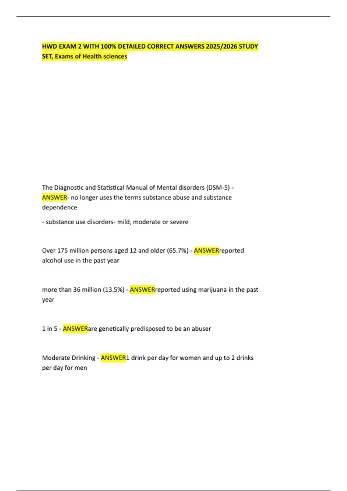 HWD EXAM 2 WITH 100% DETAILED CORRECT ANSWERS 2025/2026 STUDY