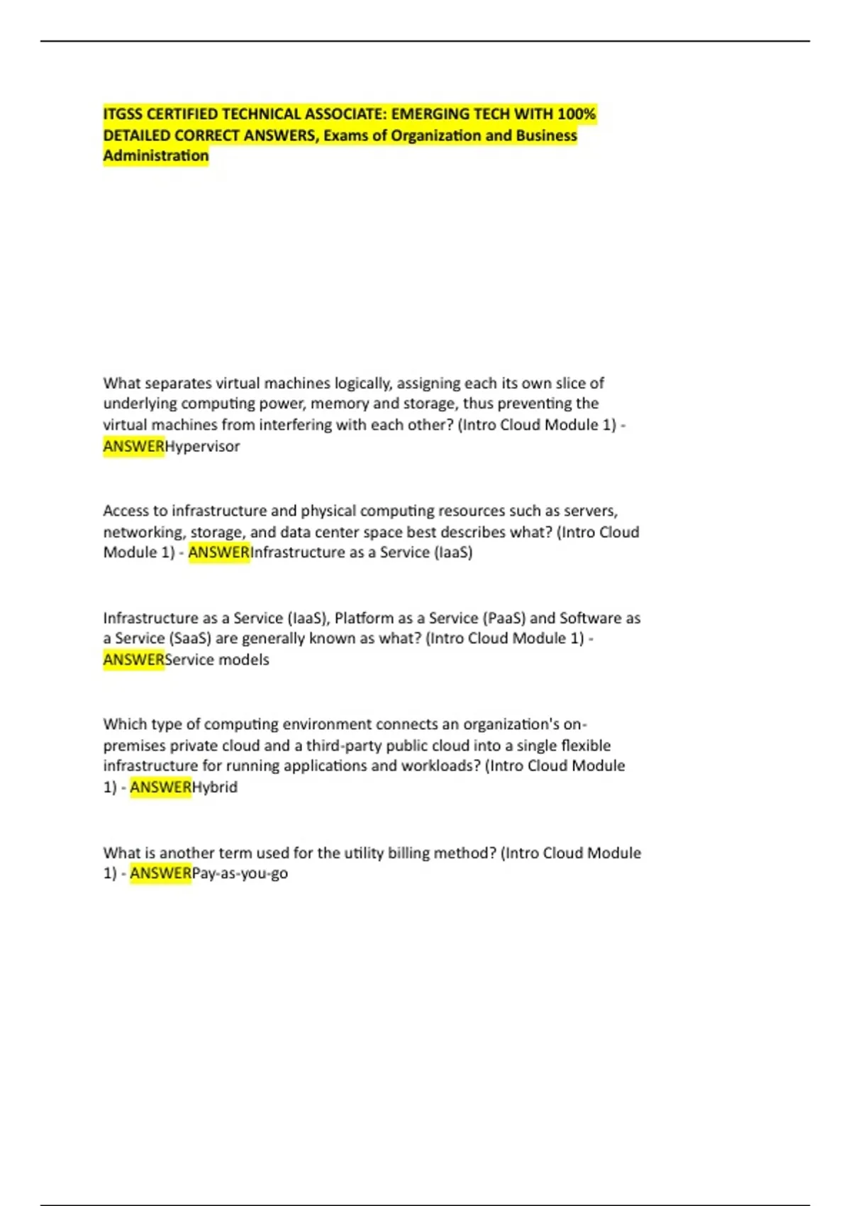 Module 1) - ANSWERInfrastructure as a Service (IaaS)